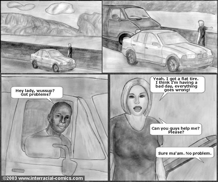 Hooked on the road by two ebony cartoon porn geeks and pounded right on the roadside